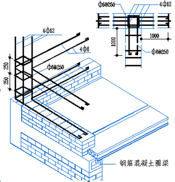c.构造柱可不单独设基础,但应伸入室外地坪下500mm,或锚入浅于500mm的基础梁内。