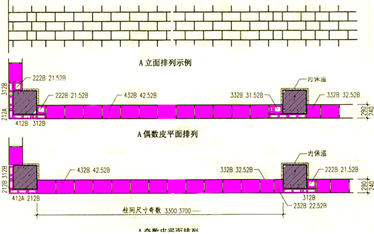 排列设计就是把不同规格的砌块在墙体中的安放位置用平面图和立面图加以表示。