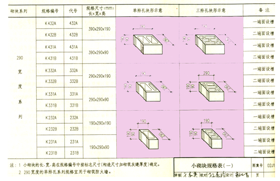 ⑷按尺寸和重量分:大、中、小型砌块三种类型。高度大于980mm为大型砌块;380mm~980mm为中型砌块;115mm~380mm为小型砌块。