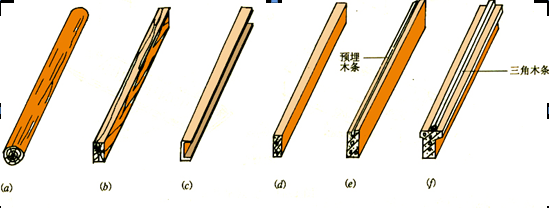 (a)圆木檩条;(b)方木檩条;(c)槽钢檩条(d)混凝土檩条之一;