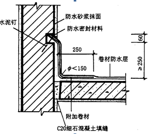 3)缝口表面用防水卷材铺贴盖缝,卷材的宽度为200~ 300mm。