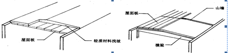 <2>特点:无须在屋面上另加找坡材料,构造简单,不增加荷载,但天棚顶倾斜,室内空间不够规整。