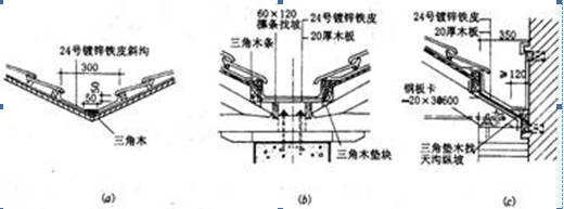 2)屋面板缝用浸过沥青的木丝板等密封材料嵌填,缝口用油膏等嵌填;