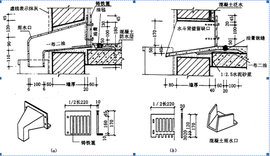 〔a)铸铁雨水口;(b)预制混凝土排水槽