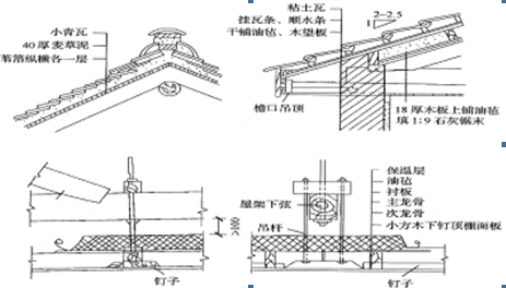 瓦屋面应做好檐口、天沟、屋脊等部位的细部构造。