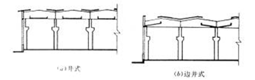 3、横向下沉式天窗:将相邻柱距的屋面板上下交错布置在屋架的上下弦上,通过屋面板位置的高差作采光口形成(图11)。