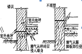 2、下图中水平防潮层的设置位置不正确或不理想,请画出正确的图。(6分)