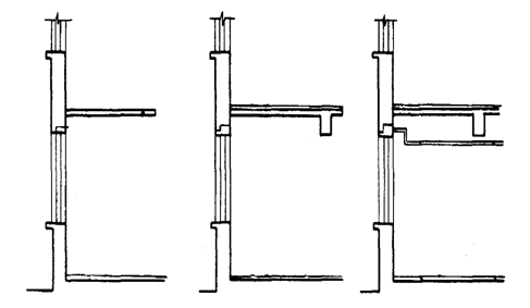六、根据以下三个建筑剖面,标注建筑的层高和净高。(6分)